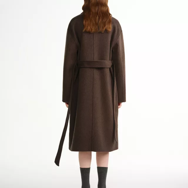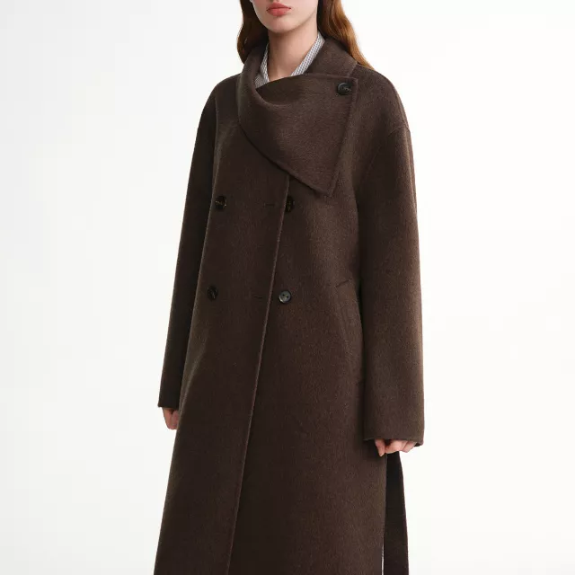 Made with a premium wool composition, this overcoat provides natural insulation that keeps you warm while still allowing breathability. The scarf collar adds a unique, fashion-forward touch, offering extra coziness around the neckline without needing a separate accessory. Long sleeves, a full opening, and practical pockets create an effortless balance of beauty and function. Falling past 26 inches, it drapes gracefully to elongate the figure and enhance comfort during chilly days. This coat is best worn during autumn and winter when you want protective warmth styled with sophistication.