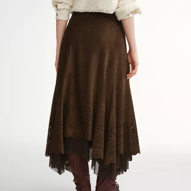 What truly makes this skirt stand out is its combination of plush velvet fabric and thoughtful plus-size tailoring. It is designed to enhance your natural curves without clinging, offering a flattering look for real body shapes. The cut-out detailing adds character, while the empire waistband provides a lifted and streamlined appearance.