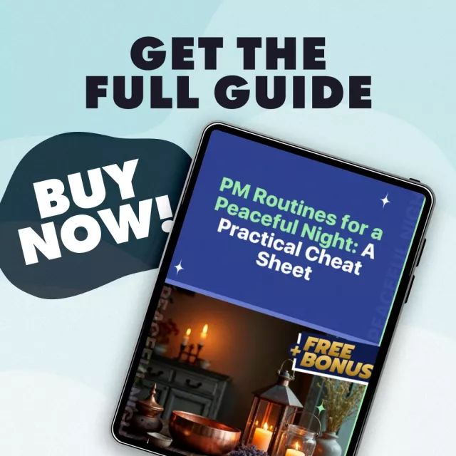 Don’t wait for sleepless nights to take a toll on your health and happiness. Download “PM Routines for a Peaceful Night: A Practical Cheat Sheet” today and start experiencing the benefits of better sleep, reduced stress, and more peaceful evenings. Your best night’s sleep starts here!