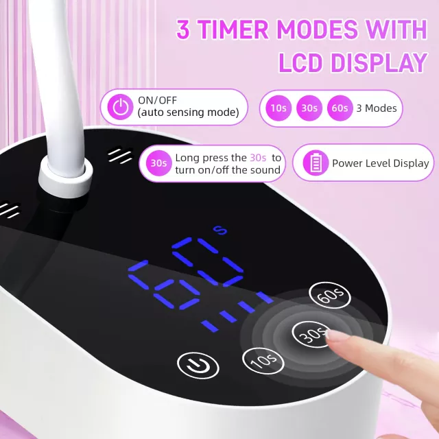 - Adjustable Timer Settings: Choose between 10, 30, or 60-second cycles for quick touch-ups or full manicures, ensuring precision every time.