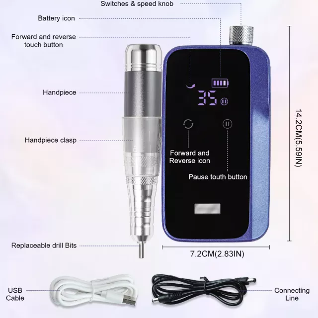 Unlike ordinary nail tools, this professional nail grinder is built for efficiency and comfort. Its sleek portable design makes it perfect for at-home beauty routines or even for professional nail technicians on the go. The rechargeable feature means no more messy cords, while the LED display helps you stay in control of speed and power. With low heat, low noise, and a comfortable grip, every manicure becomes a relaxing experience instead of a chore.