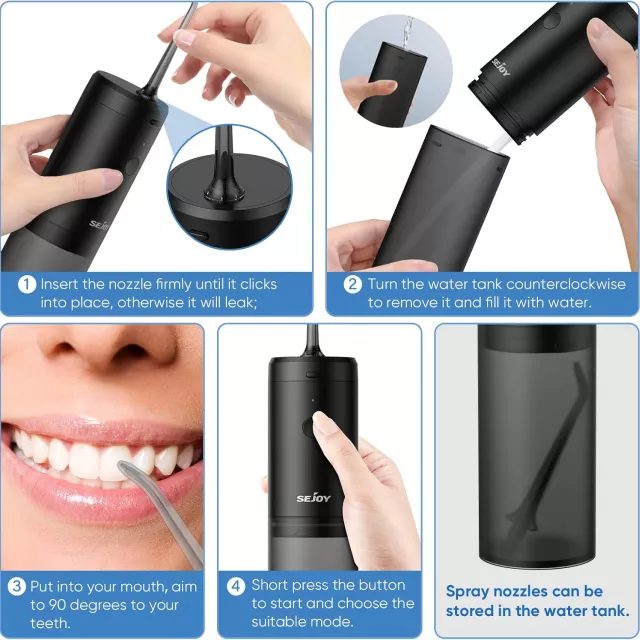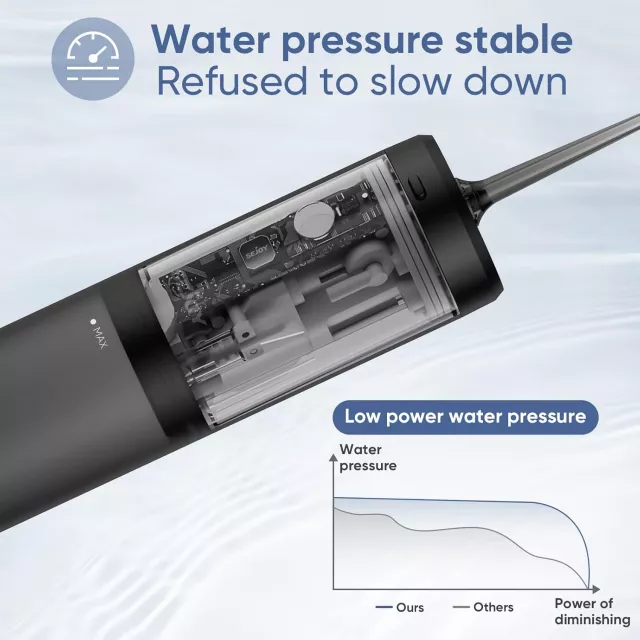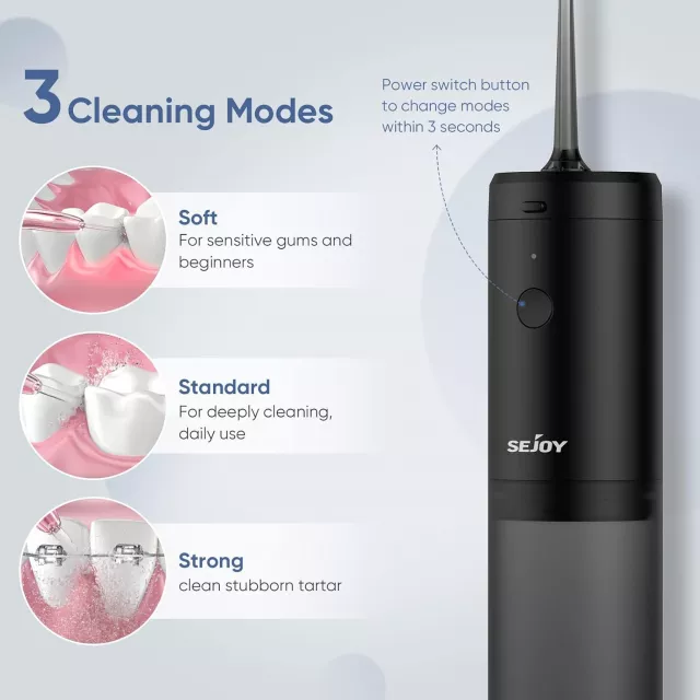 The cordless water flosser features a cleanable and removable water tank for easy hygiene and transparent visibility. With a high-frequency 1900 pulses per minute water stream and a precision 0.6mm nozzle, it removes food debris and plaque where brushing can’t reach. Three adjustable modes and three interchangeable nozzles let you customize your cleaning, whether you need a gentle touch for sensitive gums or a powerful flush for deep cleaning.