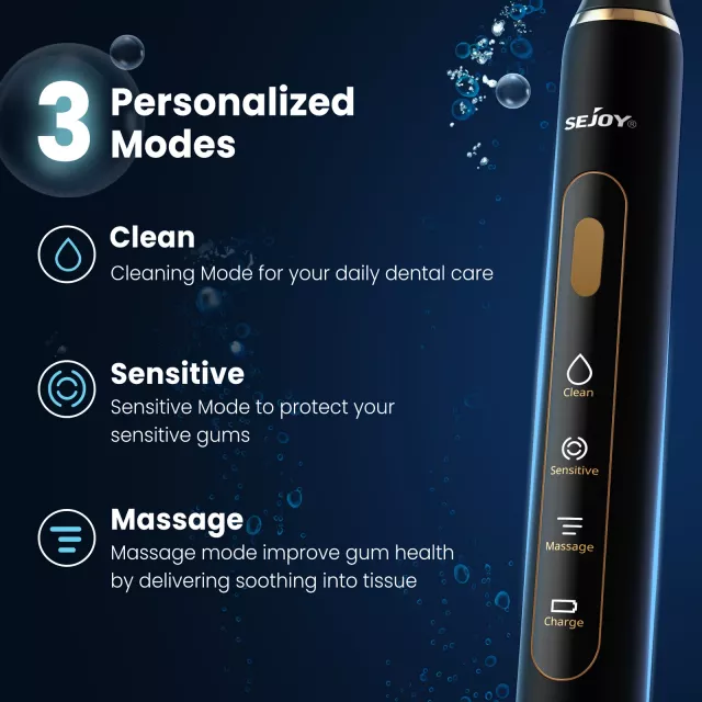 The included electric toothbrush delivers up to 30,000 sonic vibrations per minute, removing up to 15 times more plaque than a manual brush. With soft bristles, a built-in smart timer, and three brushing modes (clean, sensitive, massage), it ensures you always brush for the dentist-recommended two minutes. Plus, the IPX7 waterproof design means you can use it confidently in the shower or bath.