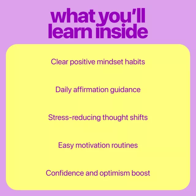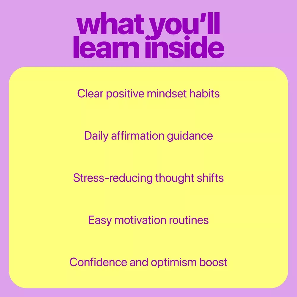 Unlike generic mindset resources, this pack combines education, action, and daily reinforcement in one cohesive system. Instead of quick motivational quotes, you get structured guidance, practical tools, and a supportive affirmation journey that helps positivity stick.