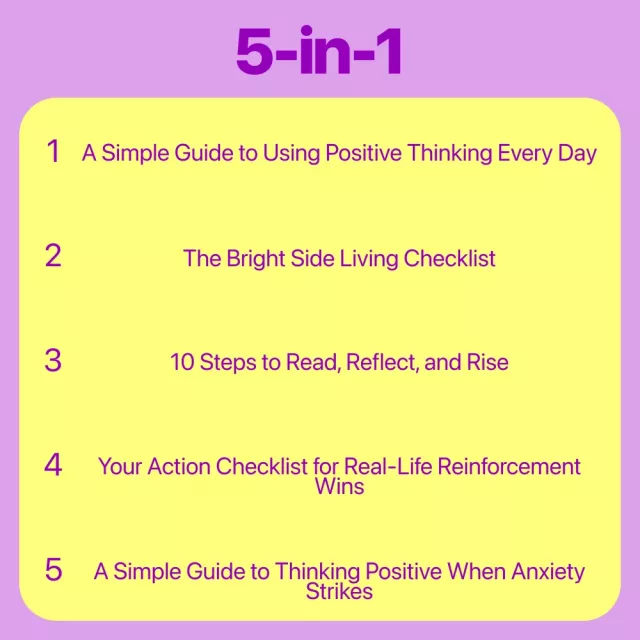 The Bright Side Living guide is an absolute gem! It provides real-life applications of positive thinking that are simple yet effective. Plus, having a checklist makes staying consistent and focused way easier than before.
