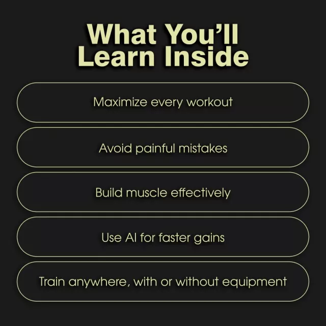 • Chapter 4: Using AI to Maximize Results Step into the future of fitness. Learn how to leverage AI Workout Planners, get feedback from AI-Powered Form Checkers, and stay driven with Creative AI Prompts for Motivation.