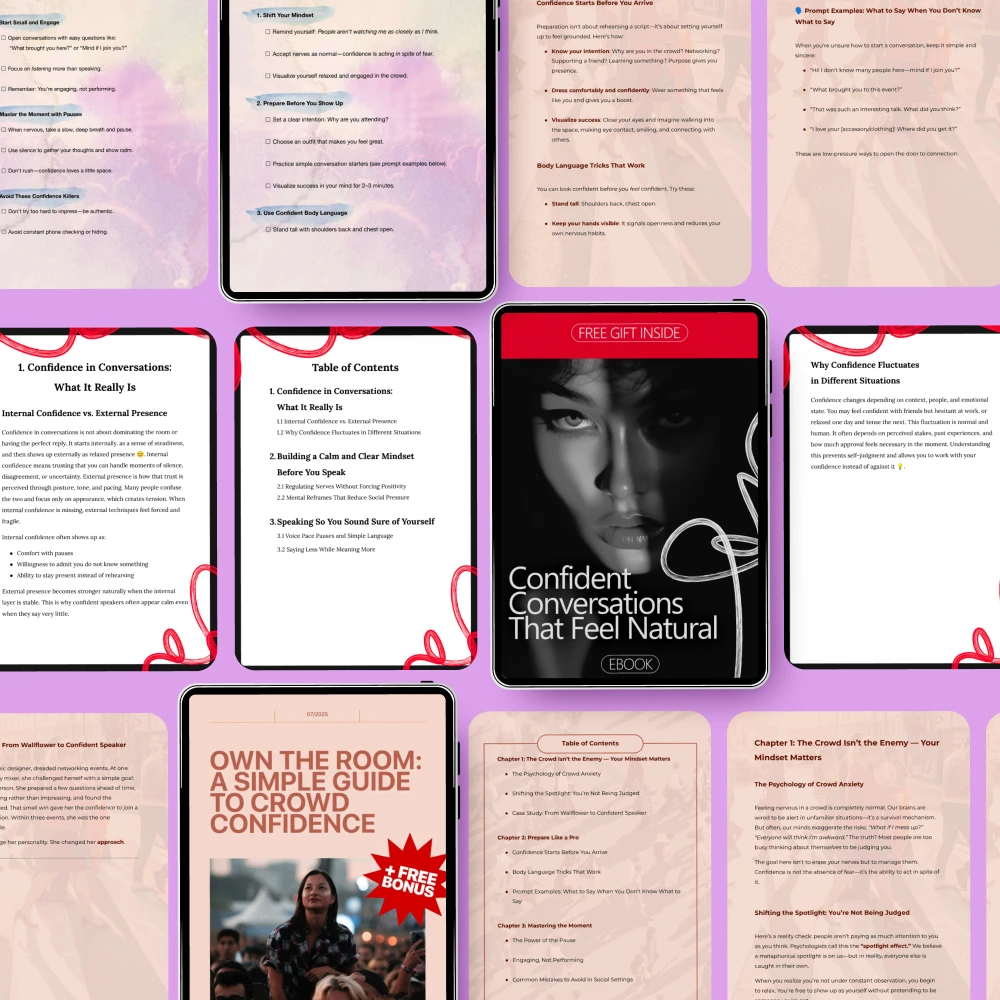 • The Crowd Confidence Kickstart Checklist: Own the Room Like a Pro – A quick, easy-to-follow checklist to ensure you’re fully prepared to project self-confidence in any group setting.