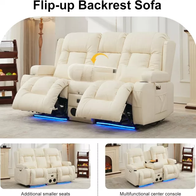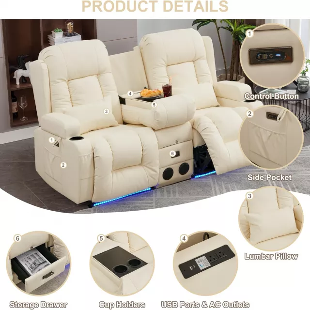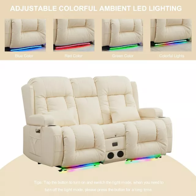 Transform your living room or RV into a luxurious personal cinema with this Power Reclining Loveseat with Massage, Heat, LED lights, and Built-in Console. Designed for two, this modern loveseat brings unmatched comfort and smart functionality to your favorite entertainment space. Whether you’re settling in for movie night or enjoying a midday nap, this recliner chaise lounge wraps you in total relaxation at the touch of a button.
