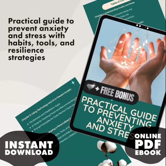 If you’ve ever felt overwhelmed, restless, or trapped in cycles of worry, the Practical Guide to Preventing Anxiety and Stress is here to help. Designed as an easy-to-follow digital download, this eBook blends psychology, daily habits, and modern tools so you can finally learn how to prevent anxiety and stress in real, practical ways. Whether you’re new to stress management or searching for proven techniques you can apply today, this guide offers step-by-step clarity for creating balance in your mind and body.
