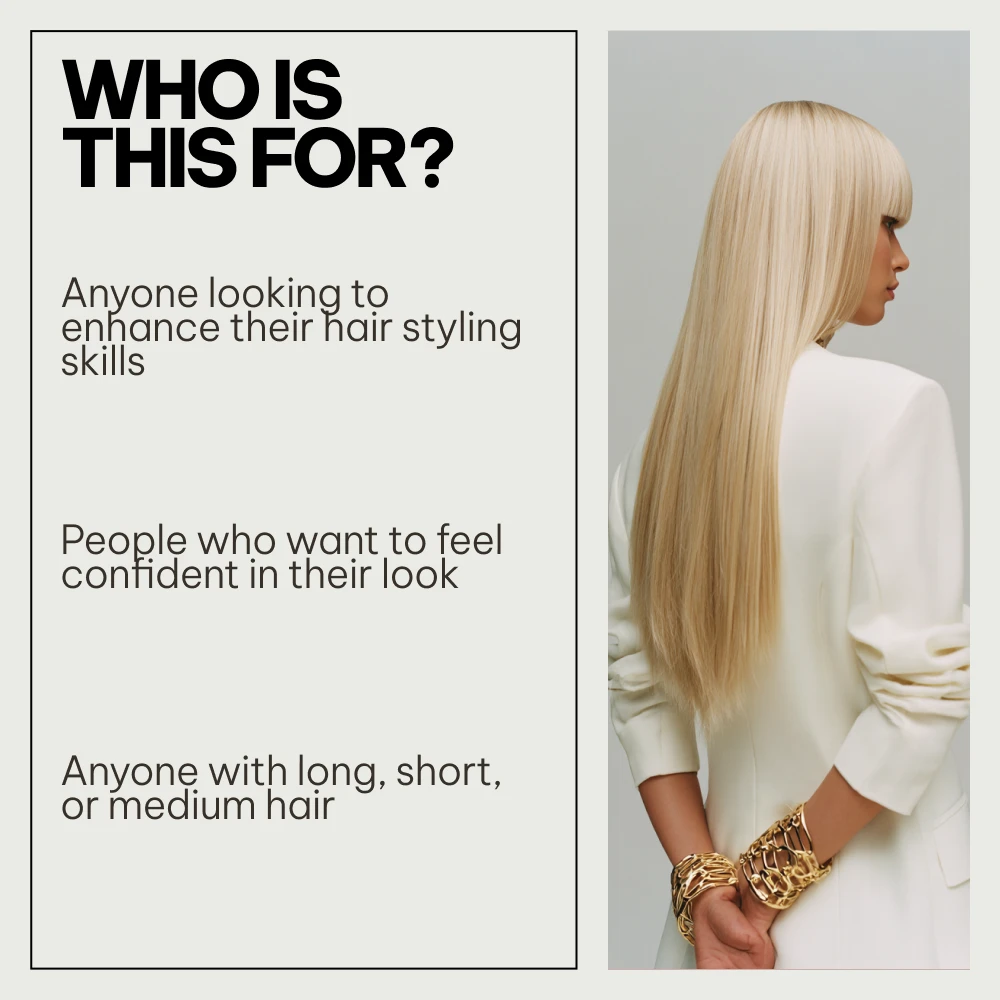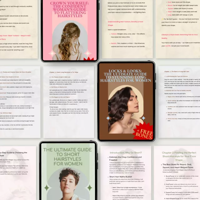 This bundle includes four comprehensive digital downloads designed specifically for women who want to learn and perfect their hairstyles: