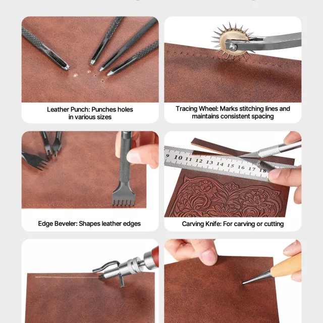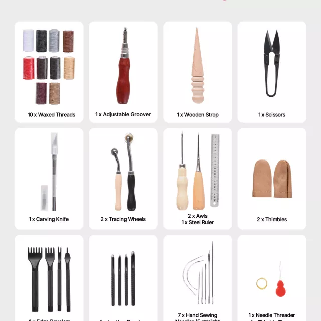 This kit is more than just a collection of tools—it’s a gateway to your creative potential. Each tool is carefully selected to make every project easier and more enjoyable. The adjustable groover and variety of stamping and stitching tools give you unmatched flexibility, letting you create intricate designs with professional results. Whether you’re a hobbyist exploring leatherworking for the first time or an experienced artisan looking for a complete toolkit, this set delivers quality, versatility, and convenience all in one package.