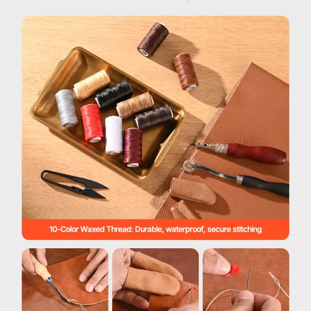 With a variety of tools neatly organized in a durable storage bag, you’ll always have the right tool within reach. From precise stitching tools to engraving punches and adjustable groovers, this kit makes it simple to create professional-looking projects in the comfort of your home. Its versatile design allows you to work on leather, denim, fabric, and canvas, opening endless possibilities for creative expression.