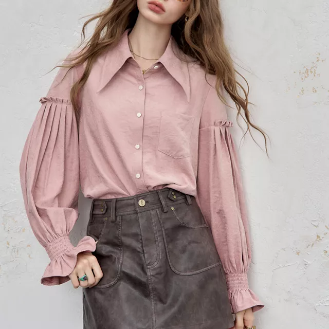 This chic, preppy-inspired shirt is the perfect blend of elegance and comfort for the colder months. Designed to keep you looking stylish while staying cozy, it’s an essential piece for every modern woman’s winter wardrobe. Featuring a solid color design with a unique wrinkled ruffle detail on the sleeves, this shirt adds a touch of sophistication to any outfit, making it ideal for both workdays and casual outings. With its turn-down collar and full sleeves, it’s the perfect balance of stylish and practical.