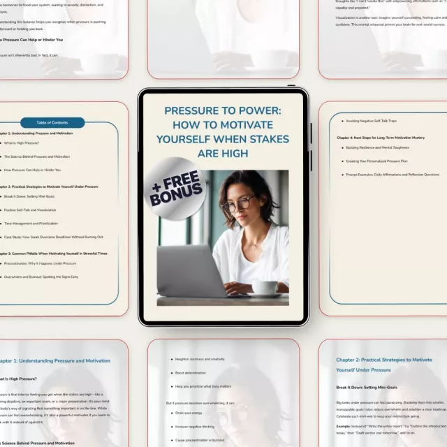 If you’re ready to stop feeling stuck and start performing at your best, Pressure to Power: How to Motivate Yourself When Stakes Are High is your next step. Download instantly and start turning pressure into progress today.