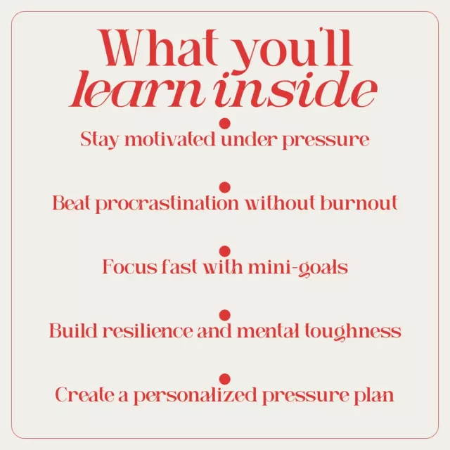 This downloadable guide is thoughtfully structured to help you understand pressure, work with it, and build long-term motivation skills.