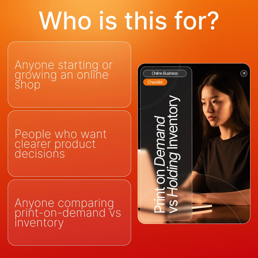 Unlike generic ecommerce checklists, this guide compares print on demand and holding inventory step-by-step, helping you understand the financial, operational, and customer-experience impact of each choice. It’s practical, actionable, and written in everyday language—no jargon, no fluff. It gives you both strategy and hands-on decision tools, so you can confidently choose the model that truly supports your goals.