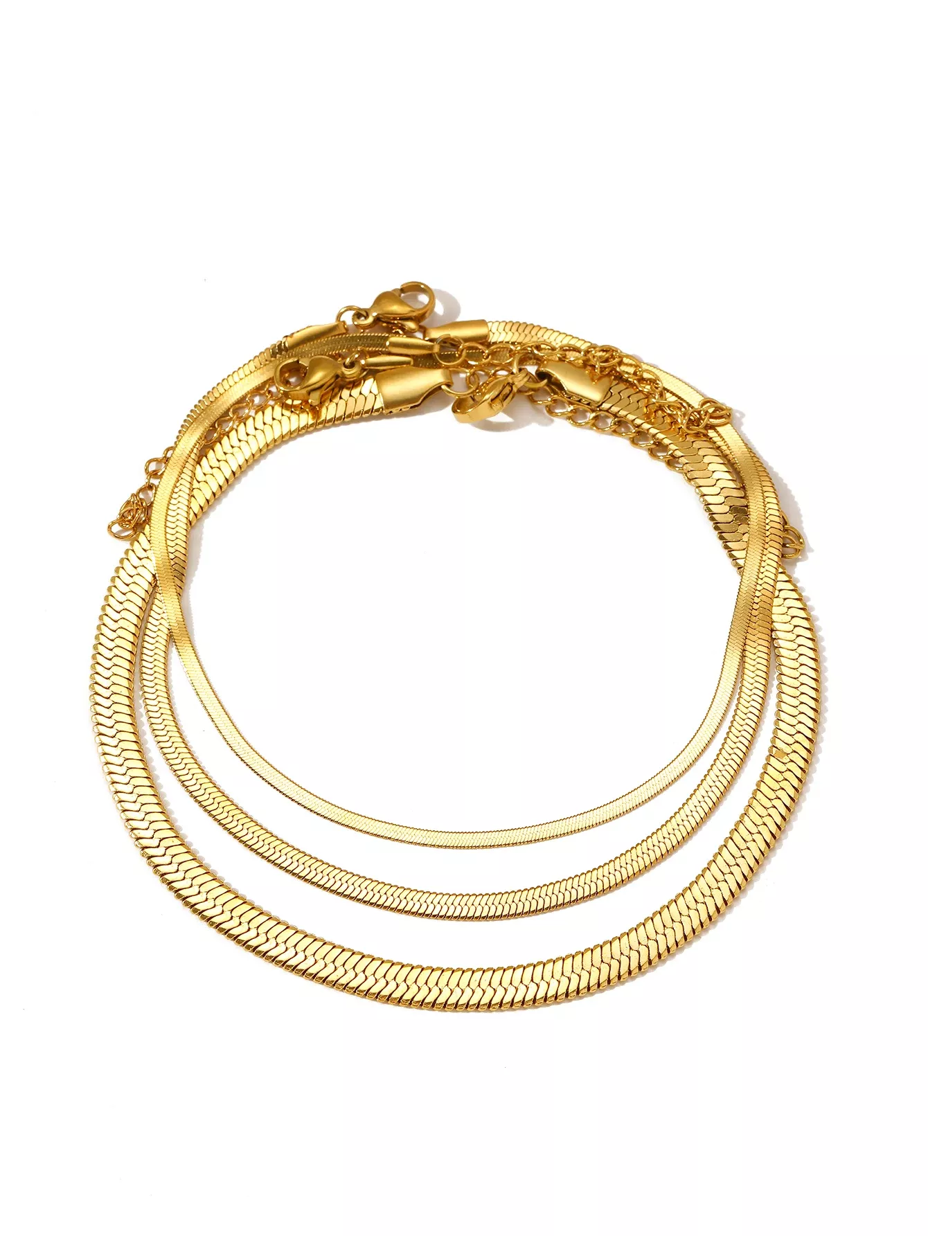 Stainless Steel Minimalist Snake Chain Anklet Set – 3 Piece Beach & Streetwear