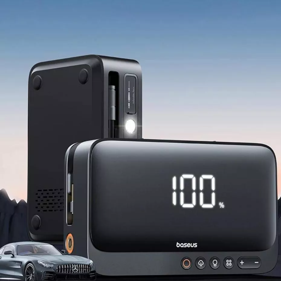 4-in-1 Portable Car Jump Starter with Air Compressor, Power Bank & LED Light