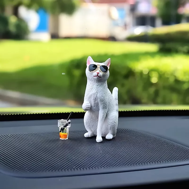 Stylish Resin Cat Car Ornament – Sunglasses & Soda Drink Decoration for Car Interiors