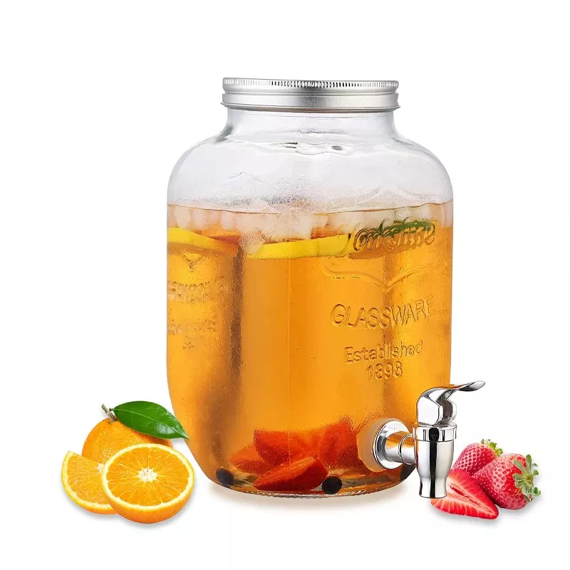 Large Glass Mason Jar Beverage Dispenser with Leakproof Spigot – 1.3 & 1.6 Gallon