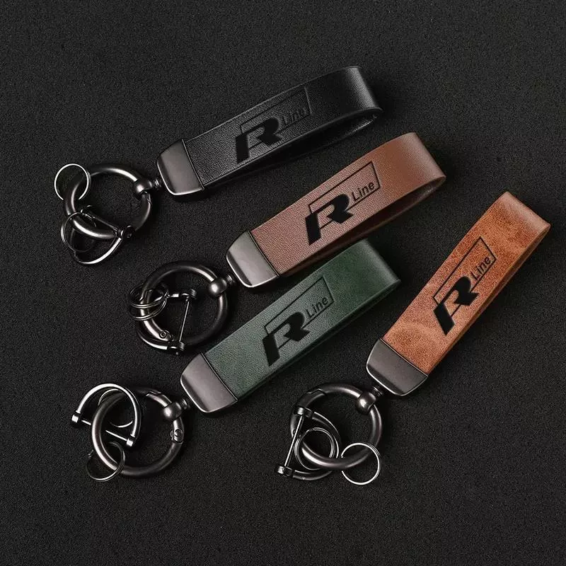 Leather Keychain Car Key Ring for VW Rline Passat Golf Tiguan Touareg CC