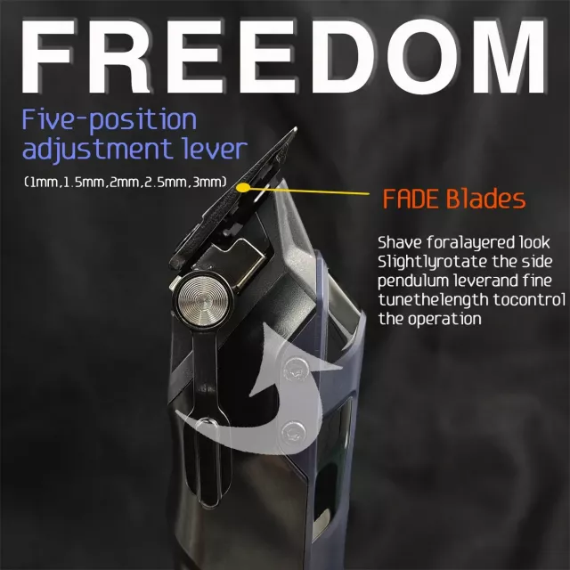 Engineered with a combination of DLC stainless steel and ceramic blades, the clipper offers superior sharpness while minimizing heat and friction. The detachable cutting head makes cleaning and blade swaps quick and easy, ensuring your tool always performs at its best. With five adjustable speeds ranging from 7000 to 9000RPM, you can customize performance to match every style and hair type.