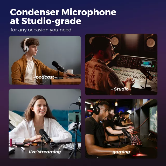 Perfect for streaming, gaming, podcasting, music production, online meetings, and studio recording, this microphone adapts to any setup. Whether you’re live on Twitch, hosting a podcast, recording vocals, or connecting with your team, it ensures your voice comes through loud and clear without unwanted background noise.
