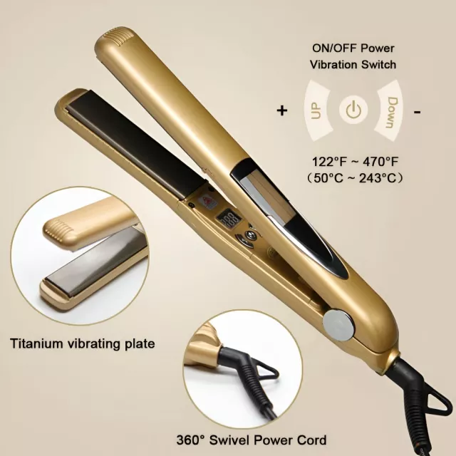 Professional Vibrating Hair Straightener & Curler 470℉ Titanium Flat Iron