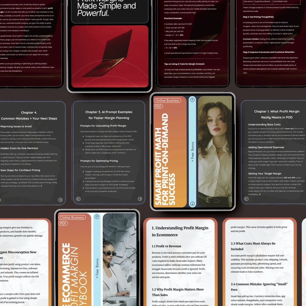 This collection is perfect if you want clarity on calculating profit margins accurately. It helped me understand where I was going wrong with my pricing strategy. Now that I've corrected it, I can see a significant increase in profits. Plus, the guide on maximizing profits in print-on-demand business model has been incredibly helpful too!