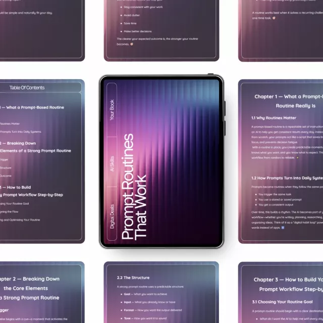 Don’t leave your productivity to chance. Download Prompt Routines That Work today and master how to build a prompt-based routine that transforms how you think, plan, and create—one smart prompt at a time.