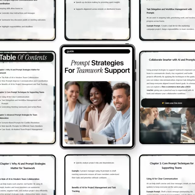 Unlike other resources, this guide focuses specifically on actionable prompt strategies for teamwork support, integrating AI tools to improve real-world team collaboration. With both core techniques and advanced strategies, you’ll gain a complete toolkit to streamline workflows, resolve conflicts, and build a library of effective prompts that evolve with your team’s needs.