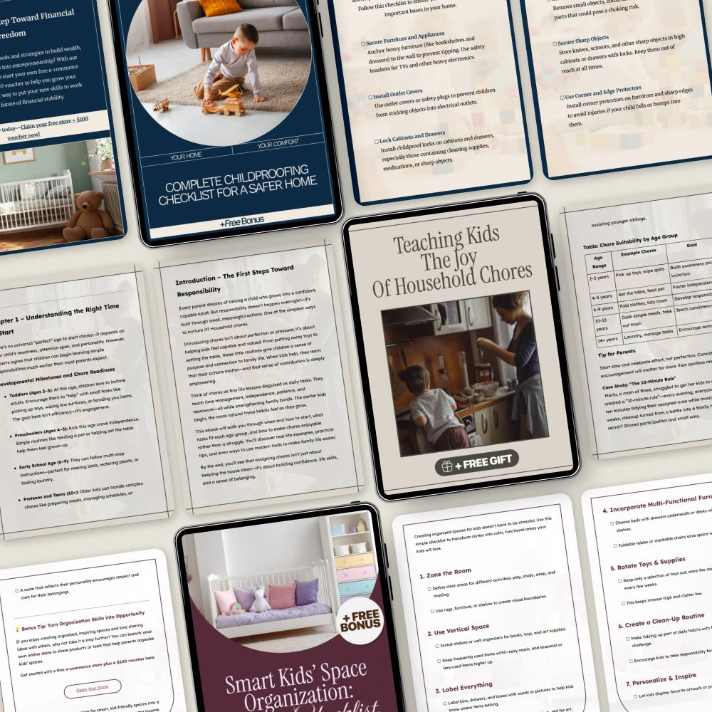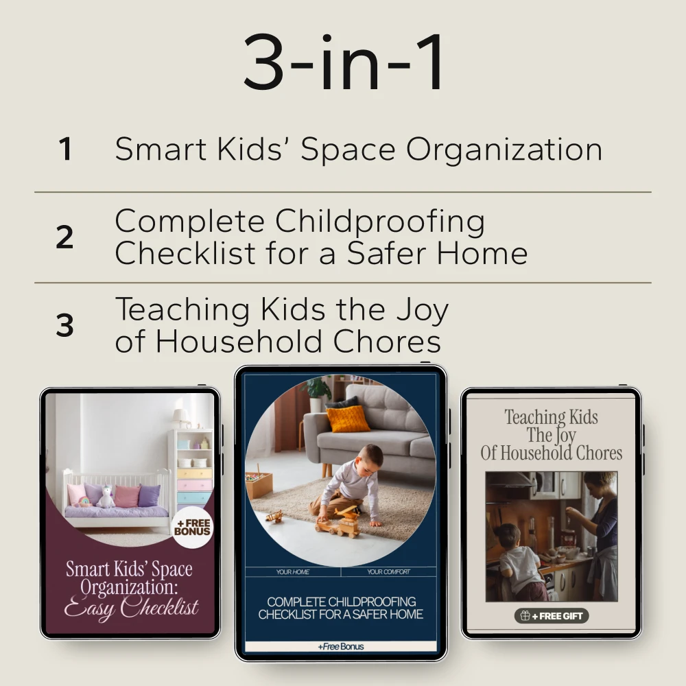 Ready to make your home safer and more organized? Download your Protective Design Choices for Growing Families bundle now and start creating the perfect environment for your children. With these expert guides, you’ll have everything you need to childproof your home and teach your kids essential life skills.