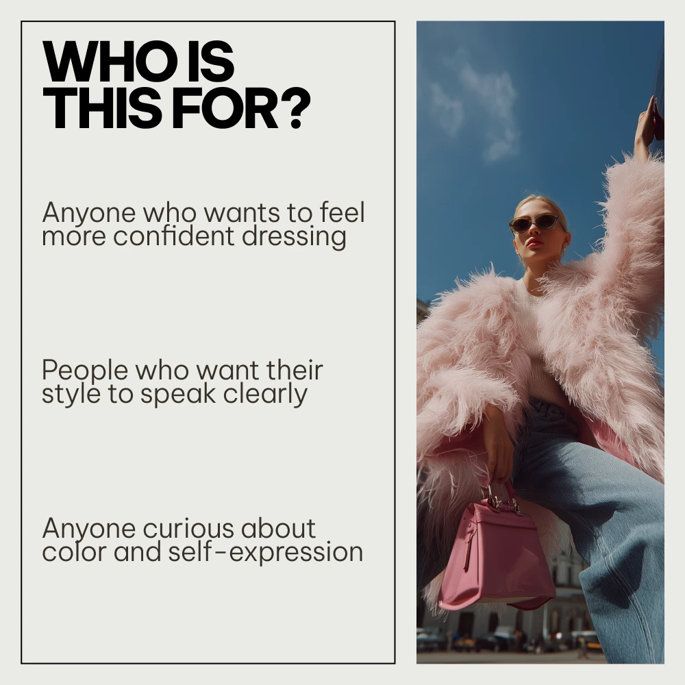 This digital bundle is ideal for anyone who wants to dress with intention. It’s perfect for professionals, creatives, entrepreneurs, students, stylists, and anyone curious about the psychology of color in clothing. Whether you’re refining a personal style, building a brand image, or simply want to feel more confident in what you wear, this resource meets you where you are.
