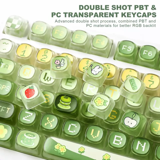Pudding Matcha Bunny MOA Profile Keycap Set – 141 Keys, Shine-Through PBT