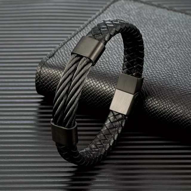 Unlike ordinary accessories, this bracelet delivers style, comfort, and durability all in one. Its non-fading finish ensures that your bracelet keeps its bold look even with daily wear. The combination of the tough steel rope design and soft, textured leather makes it a versatile accessory you can wear with casual outfits or dress up for special occasions.