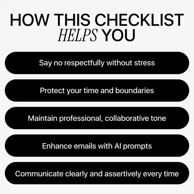 This digital checklist is perfect for professionals, managers, creatives, or anyone who frequently sends emails and wants to set boundaries gracefully. If you’ve ever hesitated to push back for fear of offending, this tool gives you practical guidance combined with AI for drafting polite pushback emails, making every response confident and considerate.