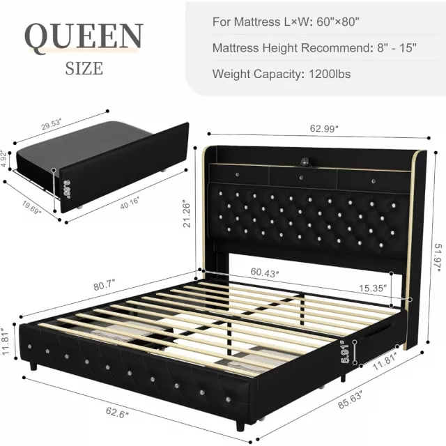 Upgrade your sleep experience with this stunning Queen LED Bed Frame, designed to combine modern luxury with everyday functionality. Featuring a built-in 360° rotating Galaxy Aurora Star Projector, hidden storage solutions, and a towering 52-inch diamond-tufted headboard, this bed goes far beyond basic. Whether you’re winding down after a long day or enjoying a lazy weekend, this multifunctional bed turns your bedroom into a personal sanctuary of comfort, style, and convenience.