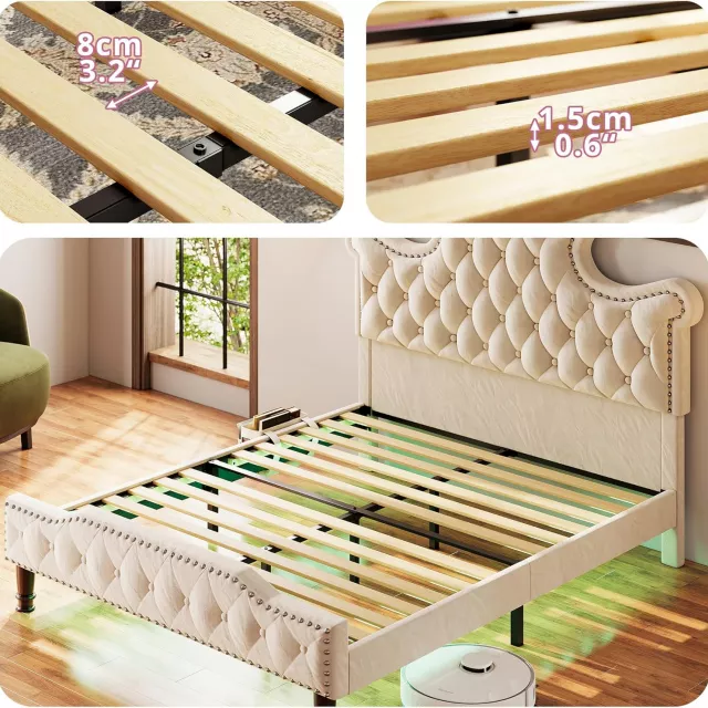 What sets this bed frame apart is its blend of functionality and elegance. The tall tufted headboard isn’t just visually stunning—it offers practical comfort for sitting up in bed. The built-in LED light adds a luxurious and practical touch, making nighttime navigation effortless. Its modern design and premium materials make it more than just furniture—it’s a lifestyle upgrade.