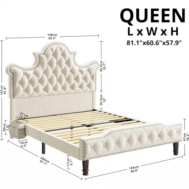 Elevate your bedroom with this stunning Queen Size LED Bed Frame, designed for those who value both style and substance. With a tall, 58-inch tufted headboard wrapped in soft cream velvet, this bed frame blends modern elegance with exceptional comfort. Built from durable, high-quality materials, it offers a strong, supportive base that ensures a restful night’s sleep—without squeaks or creaks to interrupt your peace.