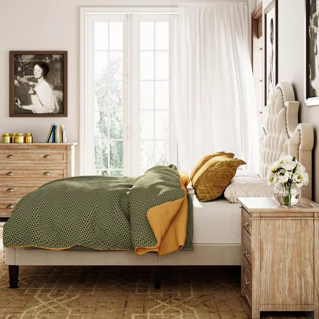 This queen bed frame is best used as the centerpiece of your master or guest bedroom. It’s ideal for daily use and built to withstand years of nightly rest, tossing, turning, and even playful jumping. Whether you’re sleeping in on a Sunday or relaxing after a long day, this frame creates a comfortable and visually appealing haven.