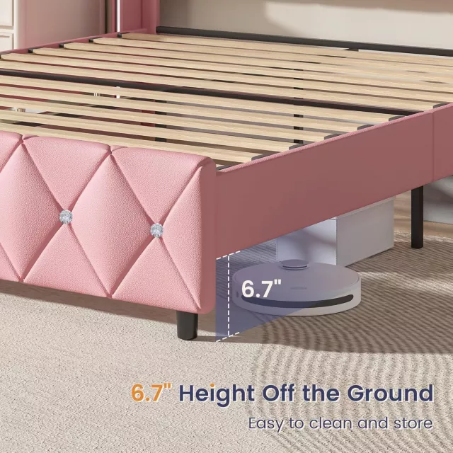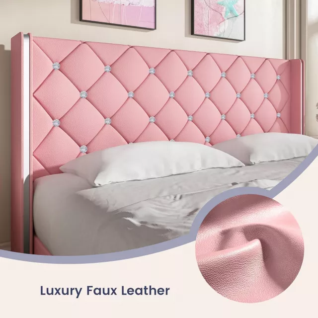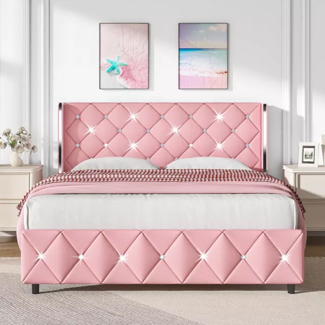 Transform your bedroom into a stylish sanctuary with this queen size upholstered bed frame. Featuring a striking diamond-stitched headboard and footboard wrapped in smooth faux leather, this bed brings a luxurious touch to any modern interior. Designed with both beauty and function in mind, the clean white finish with elegant gold accents makes it an eye-catching centerpiece that complements any decor.