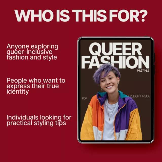 This guide is perfect for anyone wanting to explore queer fashion in an empowering, inclusive way. Whether you’re new to queer fashion or looking to refine your style, this resource is packed with insightful tips, real-world examples, and practical advice to help you build a wardrobe that expresses your true self. Unlike other fashion resources, “Queer Fashion in Style” focuses on fluidity, identity, and inclusion, offering a personalized approach to queer fashion that goes beyond simply following trends.