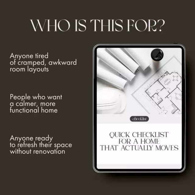 This checklist is made for anyone who feels frustrated by awkward layouts, narrow walkways, or rooms that just don’t “feel right.” If your home doesn’t flow, this guide shows you exactly how to fix it—quickly and affordably.