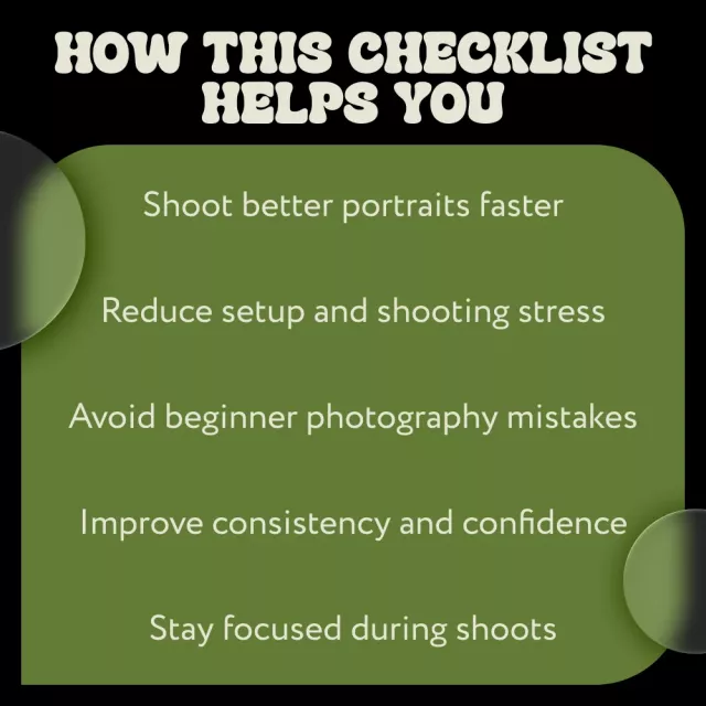 This checklist is ideal for beginner photographers, hobbyists, content creators, and anyone looking for practical portrait photography start tips without overwhelming technical jargon. It is also useful for photographers who want a simple pre-shoot reminder to stay focused and creative.