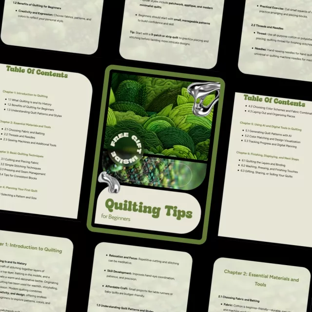 Unlike many basic guides, Quilting Tips for Beginners combines traditional quilting foundations with modern AI and digital planning tools, helping you learn smarter, not harder. It’s designed to grow with you from your first quilt to future projects.