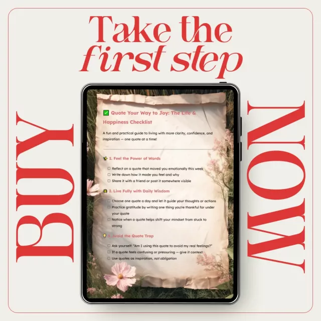 Don’t wait for happiness to find you — take control and start living joyfully today. Download your Quote Your Way to Joy: The Life & Happiness Checklist now and begin your journey toward a more fulfilled, inspired life. Click the button to get started and turn your mindset into your most powerful tool for happiness!