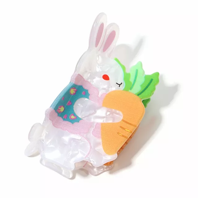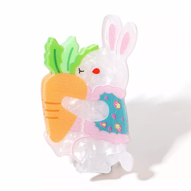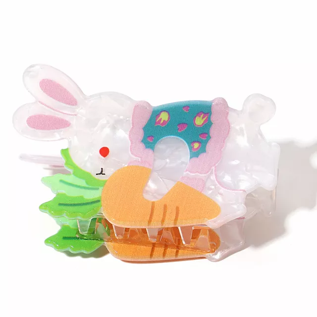 This hair clip is special because it transforms whimsical storytelling into wearable art. The charming design features a sweet rabbit character clutching a radish with such detail you can almost see its happy expression. What makes it truly special is the creative originality of the design—this isn’t just another animal clip, but a unique scene that captures imagination and personality. The high-quality acrylic construction ensures the delicate details remain crisp and clear, while the strong claw mechanism provides practical functionality. It’s this perfect balance of artistic creativity, quality materials, and everyday usability that makes it exceptional.