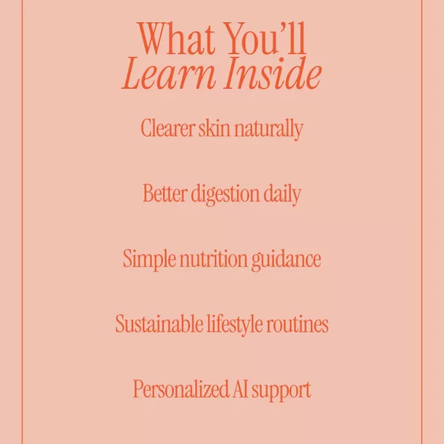 • Chapter 2: Nutrition guidance with foods that support digestion and clear skin, plus common dietary mistakes to avoid