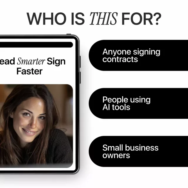 Unlike generic AI tutorials, Read Smarter Sign Faster focuses on mindset, workflow, and real-world judgment. It doesn’t promise shortcuts or legal advice. Instead, it teaches you how to think, what to check, and how to use AI as a support tool rather than a replacement.