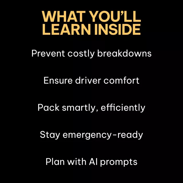 • Mechanical Readiness That Prevents Breakdowns: Engine Fluids and Filters, Tires, Brakes and Battery, plus a practical focus on common mistakes